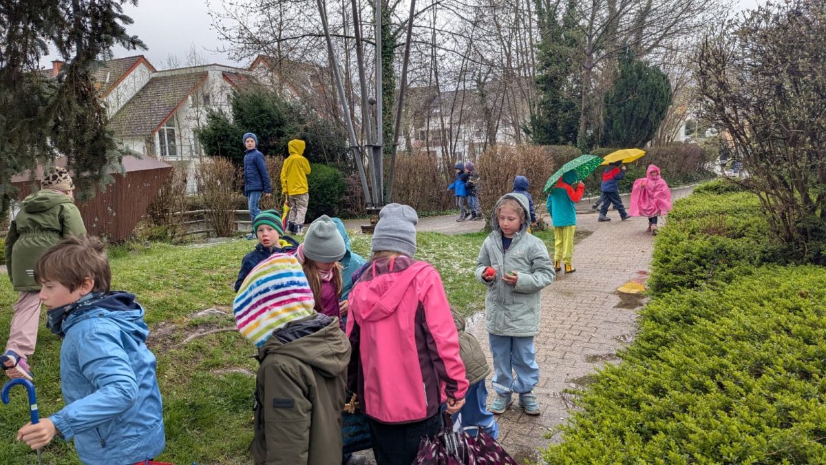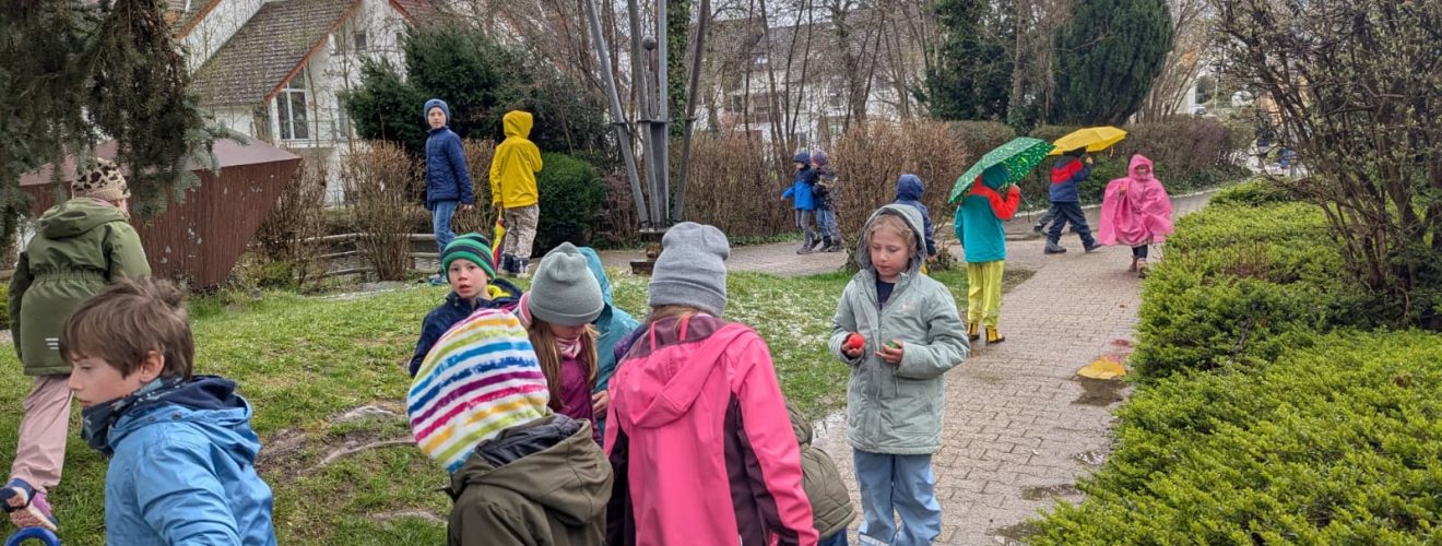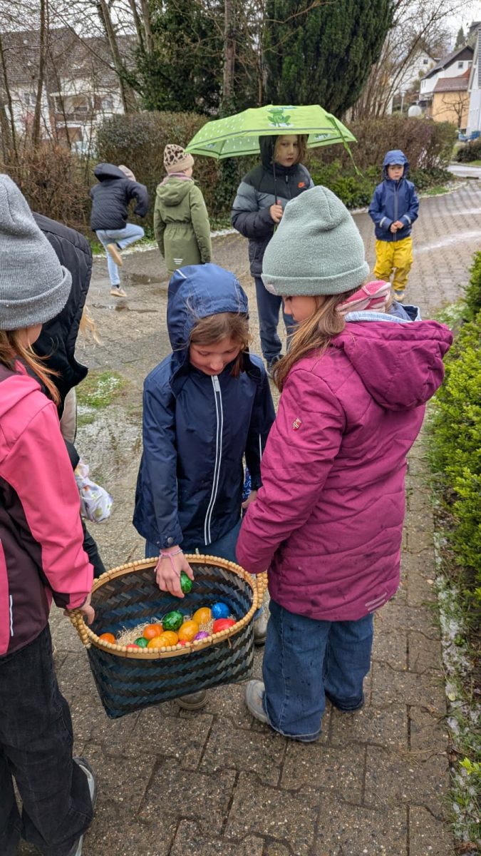 Das Wetter im März zeigte sich von seiner unbeständigen Seite, doch echte Falken lassen sich von ein bisschen Regen nicht bremsen. Da die geplante Eiersuche im Grünen buchstäblich ins Wasser fiel, wurde das Gelände rund um die Modauhalle kurzerhand zum „Jagdrevier“ erklärt. Mit Regenjacken und viel Eifer suchten die Kinder unter den Vordächern und in den geschützten Winkeln nach den versteckten Oster-Leckereien. Kein Versteck war vor den scharfen Falken-Augen sicher!