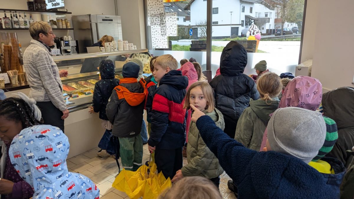 Nach der erfolgreichen Suche im nasskalten März-Wetter gab es die wohlverdiente Belohnung im Trockenen: Die ganze Truppe zog weiter in die Eisdiele Domino. Bei einer leckeren Kugel Eis kam schnell wieder Wärme und beste Stimmung auf. Ein großes Dankeschön an das Team vom Domino für die gastfreundliche Bewirtung unserer kleinen Sportler!